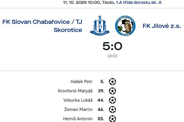 7. kolo, 1. A třída dorostu – skupina A Dorostenci FK Jílové tentokrát vyšli v Chabařovicích naprázdno. Po nadějném začátku, kdy hned...